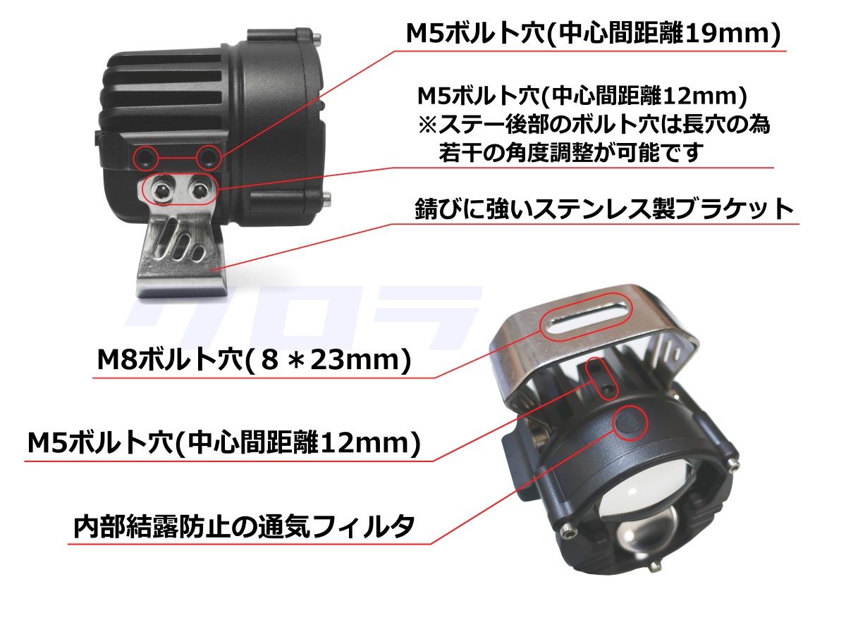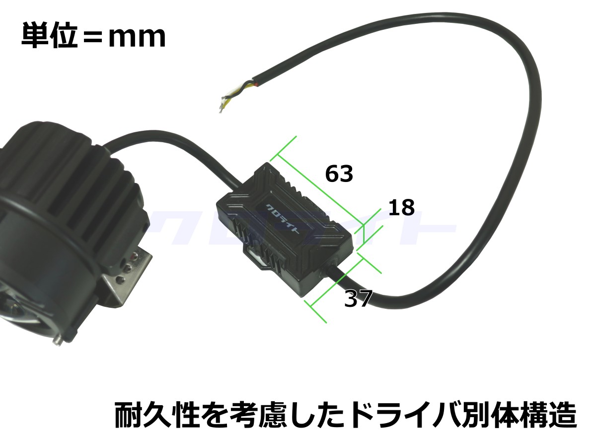 *当モデル含め、説明文に交流対応と記載のないLEDランプは直流電源専用です。交流電源で使用すると故障しますので、ミニバイクなどの交流電源でご使用になる場合は、別売のAC/DCコンバーターを合わせてご使用になるか、バッテリーからの直流電源をリレー・ヒューズと合わせてご使用ください。