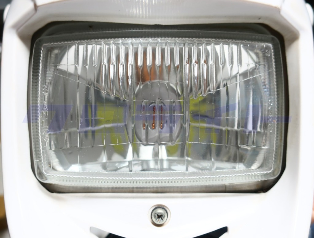※当記事で紹介しているのは、一般的なLEDヘッドライトを取り付けると良好な照射光が得られない一部のレンズカット入りヘッドライト(左下写真:表面にレンズカットがあり、内部がはっきりと透けていないもの)のオフロード車等に向けた内容となっております。人気車種の中での例としてはWR250R/X、セロー250、トリッカーなどが挙げられます。照射光の相性問題は高年式車両に多い右下のマルチリフレクターヘッドライト(右下写真:表面にレンズカットが無く、内部が透けているもの)では基本的に発生いたしません。