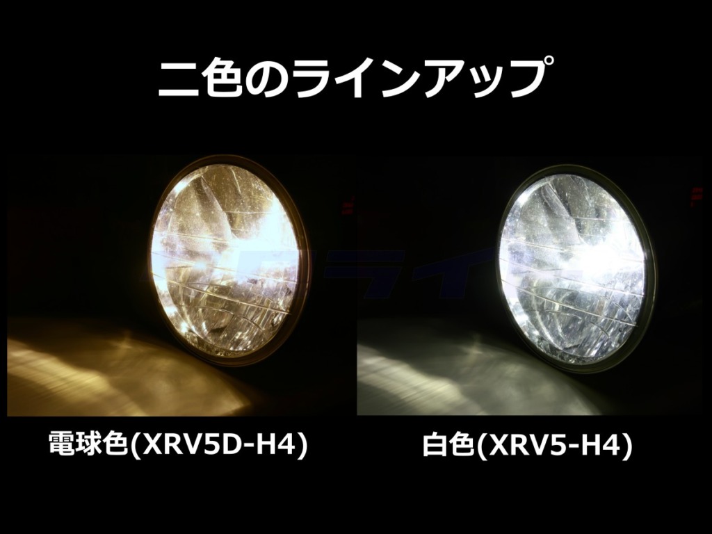 型番:XRV5-H4(白色)、XRV5D-H4(電球色) ←当店通販サイト商品ページへ飛びます